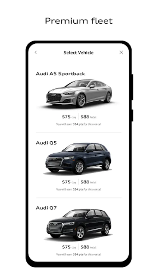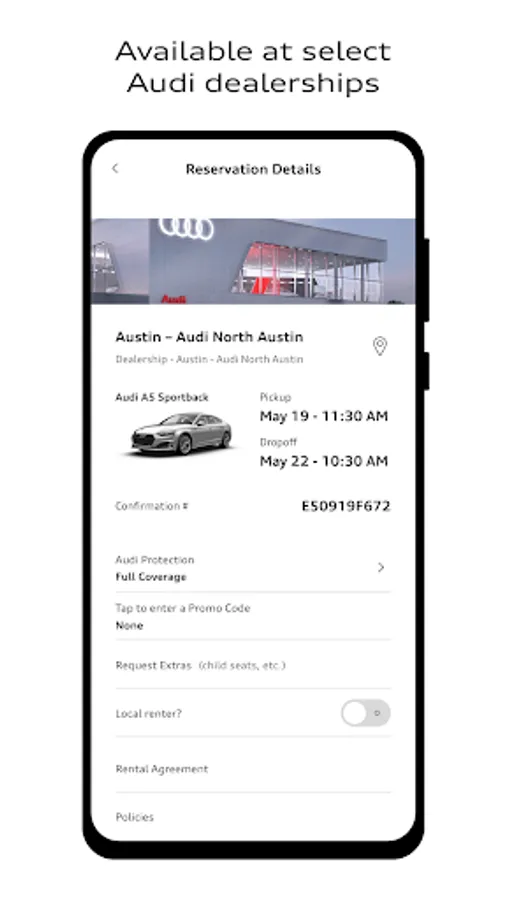 Audi on demand allows you to book a rental car in just a few seconds. Every car in the fleet is a premium Audi- what you reserve is what you get. Rent with convenience at your local Audi dealership. The only place you can rent the fully electric Audi e-tron.