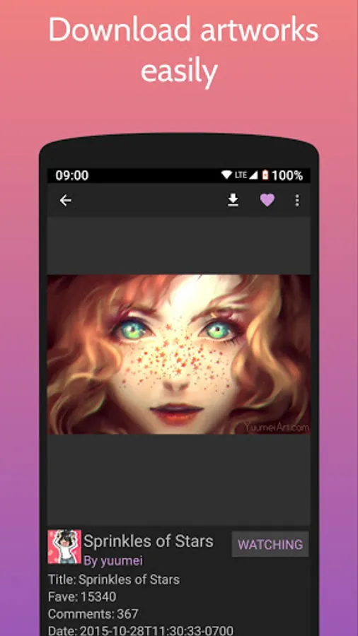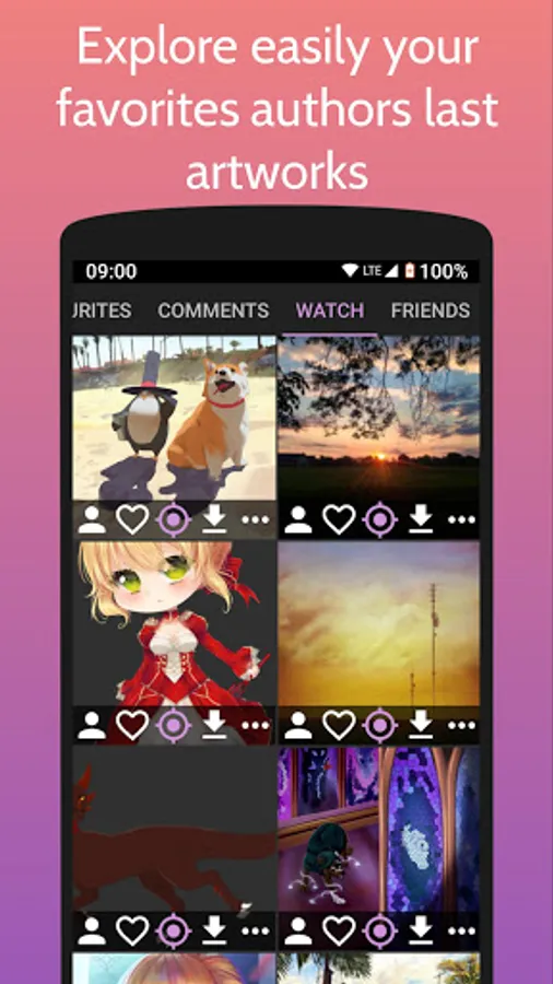 - Follow your favorites Artists last pieces (images, git, drawings, fan art, photos, etc...)