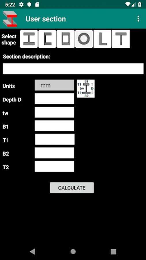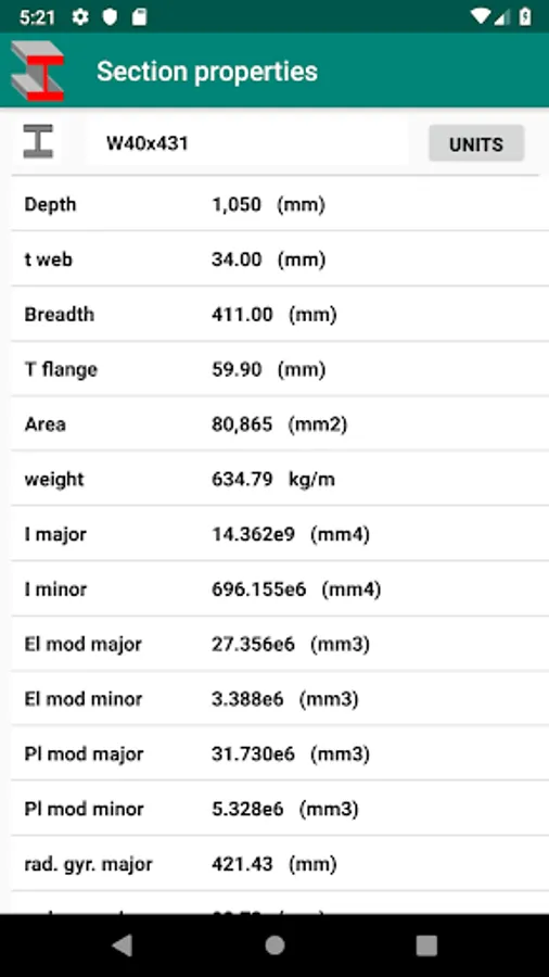 This app displays section properties (Area, moments of inertia plastic and elastic modulii etc) for a range of national shapes. It also calculates the properties of user defined shapes.