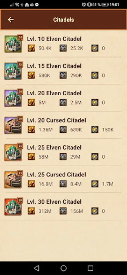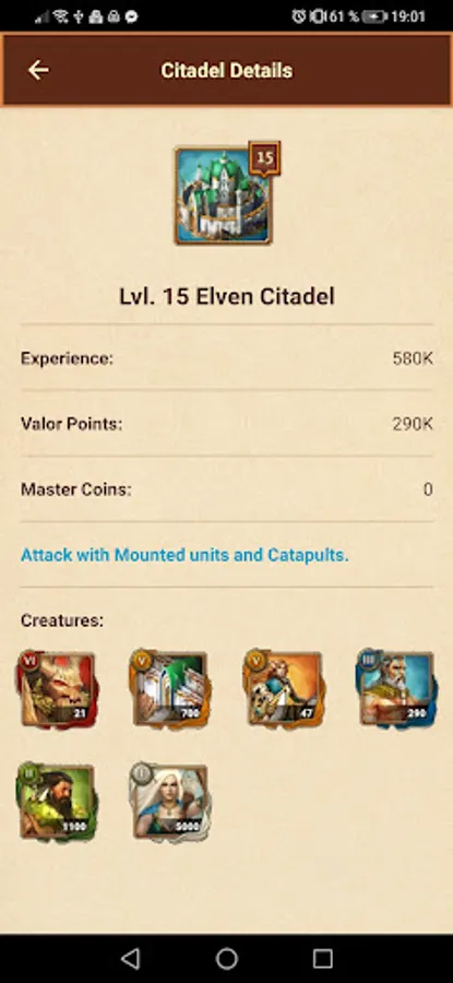 3. A calculator that allows you to calculate how many catapults are needed to destroy a citadel.