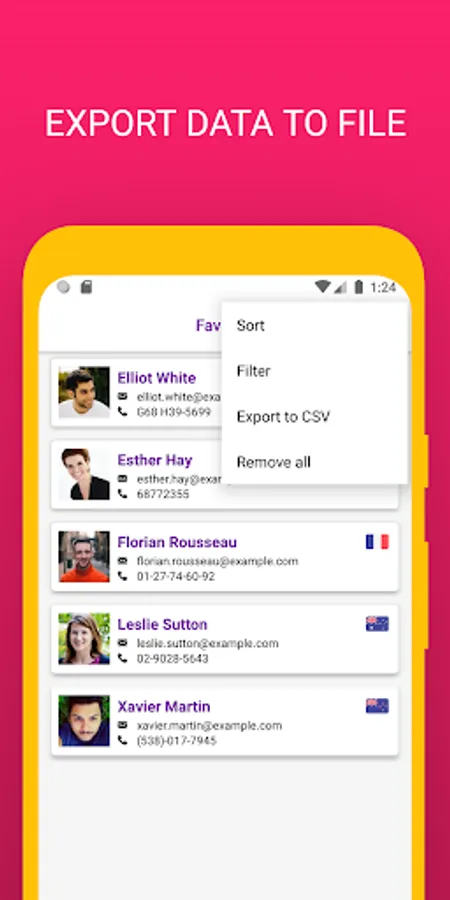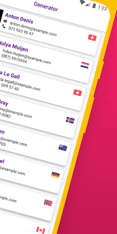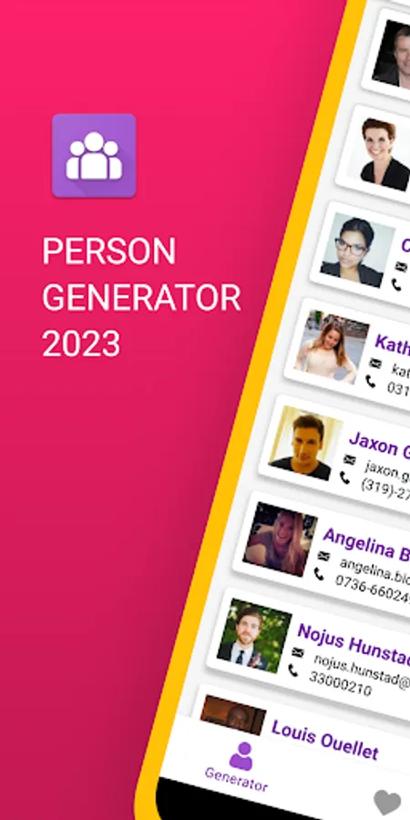 The application generates user data from 17 countries and allows you to import data to a CSV file.