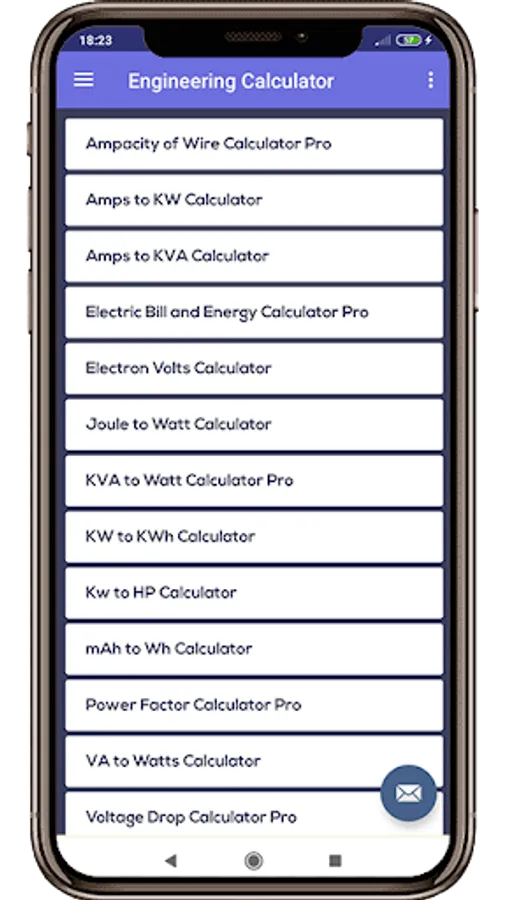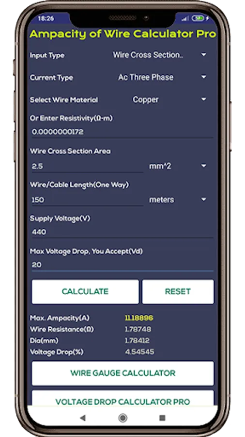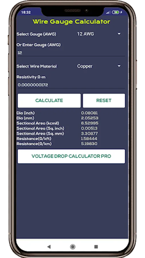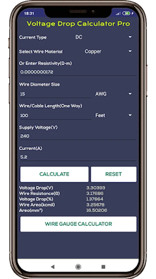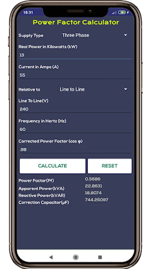 This app includes, amps, voltage, resistance, inductance, capacitance, ohm's law, kW, kWh, KVA, Power factor, wire gauge, voltage drop, ampacity, electric bill, eV, VA, watt, joules, energy cost and consumption calculator.