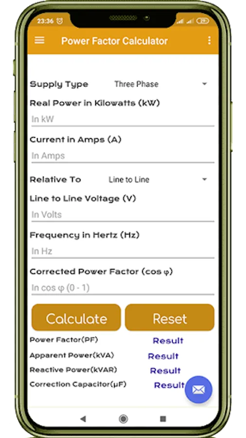 We have added Kilo Volt Amp(KVA) and Power Factor(PF) functions for quick calculation. For many more calculations, you can download our "ElectricalCalculator - Engineering Math" app.