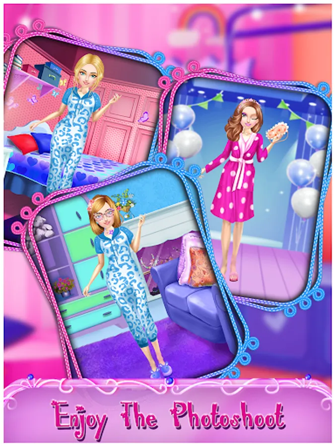 Get ready for the amazing sleepover party in this pajama party fun game for girls. Clean your face by washing with different latest tools, wear amazing makeup for the pajama party night with friends, in this wonderful pj pajama party game you will have different fun activities to play with. Get the best makeover for pj party with dress up activity, take amazing photos at the photoshoot section with your best girlfriends and share your look with your friends and family. Have fun!