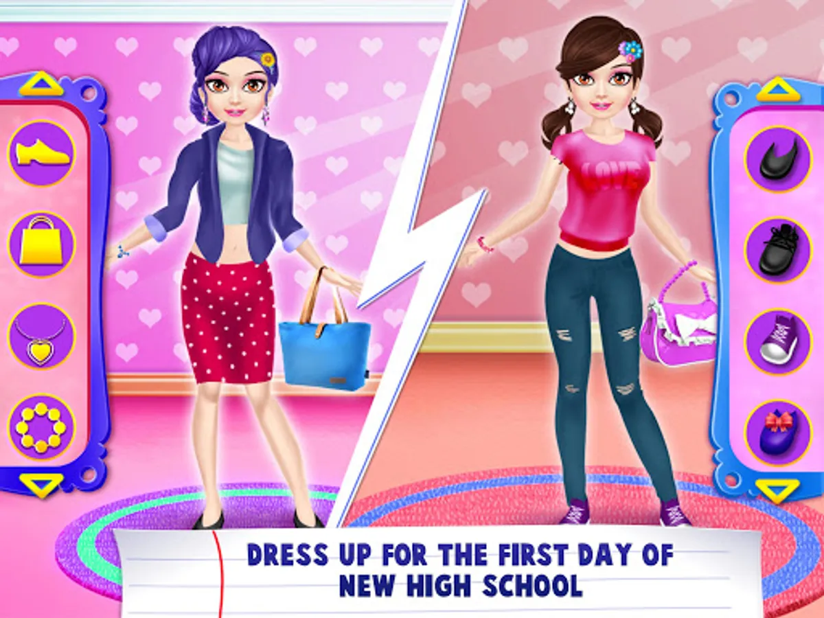This high school love game will let you dress up in your favorite dresses, makeovers and accessories. Get stunning makeovers, jewelry, clothes with your friends. Get ready to take beautiful classy pictures for more glamor. This is what actually a star girl wants. Show off your style in this real life girls game activities.