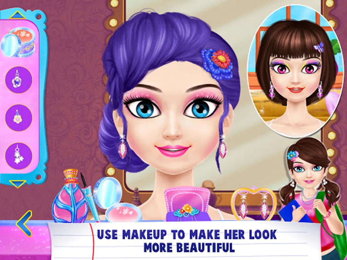Start with your beauty mission in this high school story. Get a new date and romantic night. Pay attention to your looks and take care of her hair, manicure, makeup and outfit. This popular game for girls have a engaging gameplay with beautiful story. Get up and prepare yourself for the first day in high school. Take shower ,clean your car and do the most beautiful high school girl makeup.