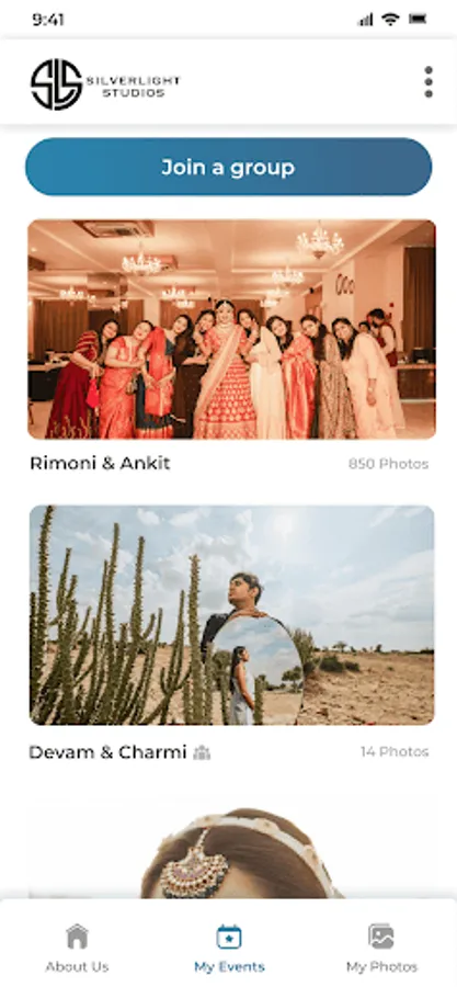 Just click on the link shared with you or scan the QR code to access the event photos.