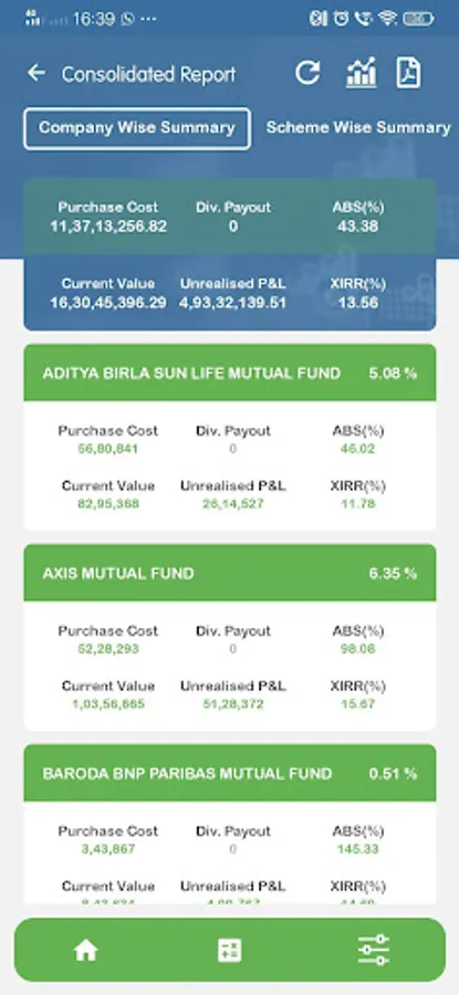 SilverLine app allows clients to view their investments in Mutual Funds, Fixed Deposit and Insurance at the click of a button. It also provides a consolidated investment report.