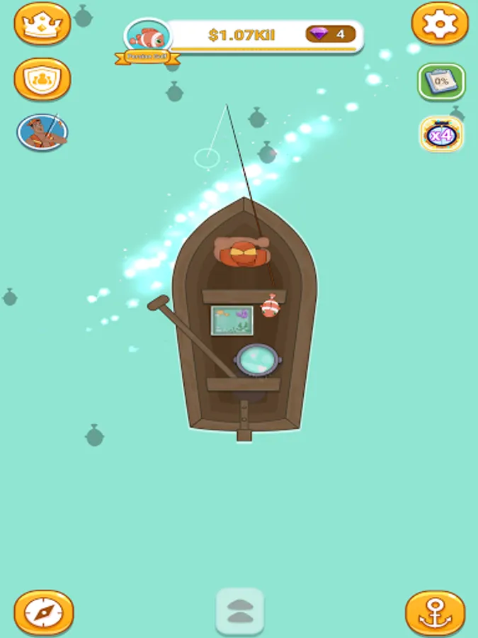 Swipe to fish and earn money to upgrade your fishing boat, hire crews to expand your team.