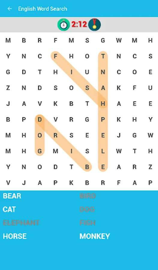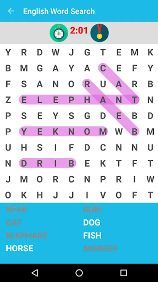 Look at the wordsearch puzzle and swipe the letters with your finger to find the hidden words.