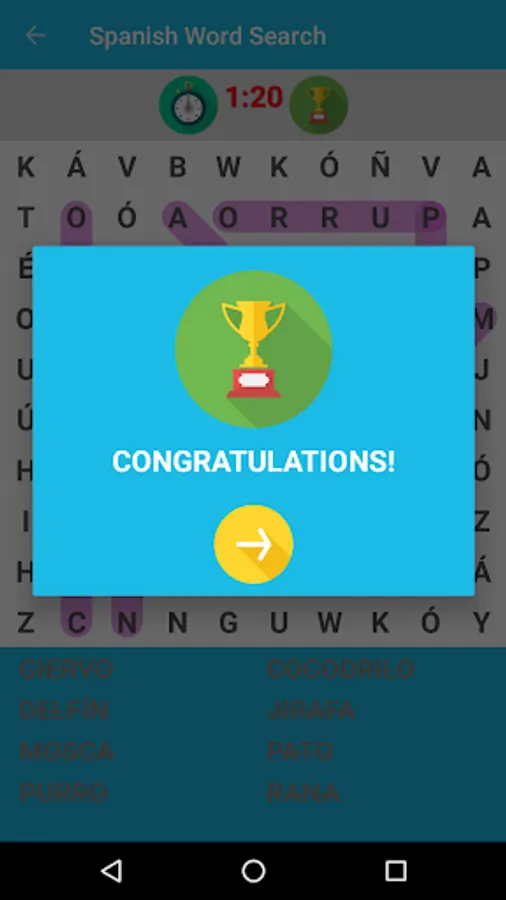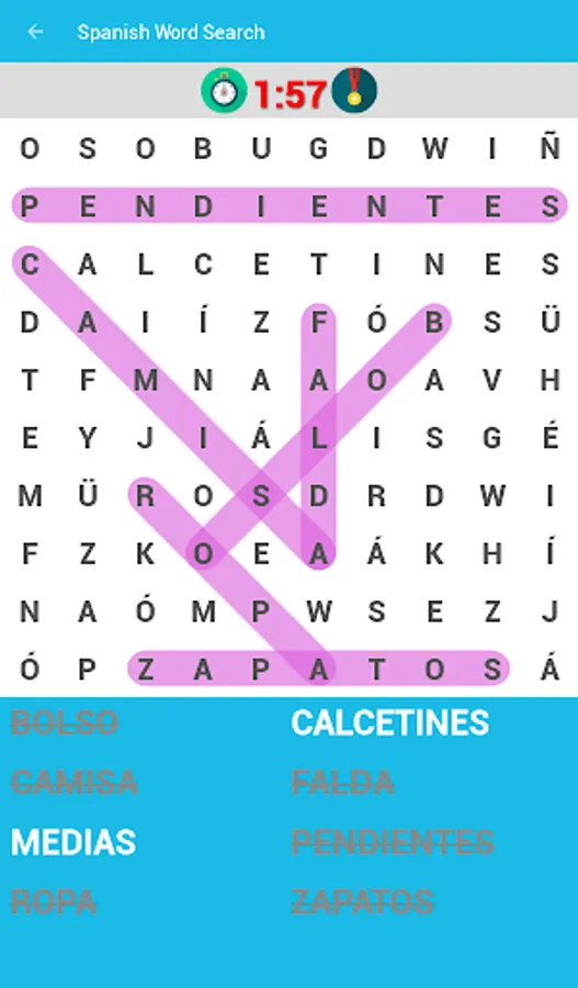 Learn Spanish language by playing word search games.
