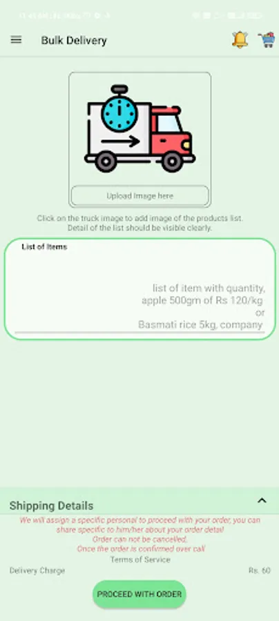 Simply download the Android shopping app on your device (phone or tablet) and create an account for yourself. Now, you will be taken to the home screen where you will find the link to different sections like edibles which hold all edible items and products like grocery, vegetables, and fast food, and Global store where you will find all non-edibles products and fashion wear.