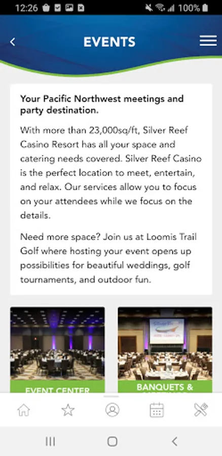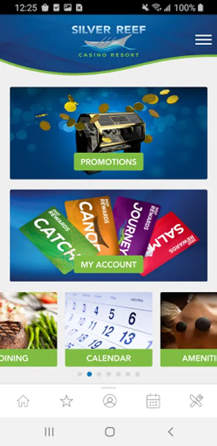 Play, win, and check your Reef Rewards status anywhere. Silver Reef Casino Resort provides Reef Rewards members with the newest promotions, messages, and mobile games directly to their phones. Receive the latest dining menus and hours, book your tee time at Loomis Trail Golf, or schedule a relaxing massage all at the tips of your fingers. The Silver Reef Casino Resort mobile app is a great way to pass the time, stay up to date with your favorite casino, and plan your next weekend getaway.