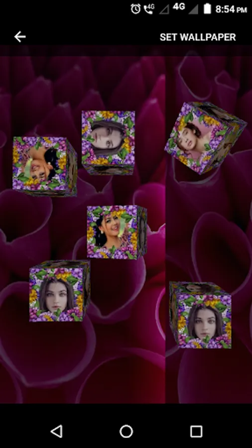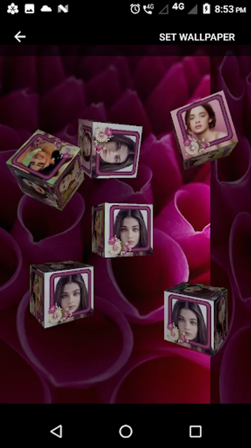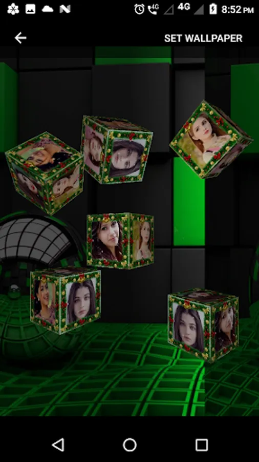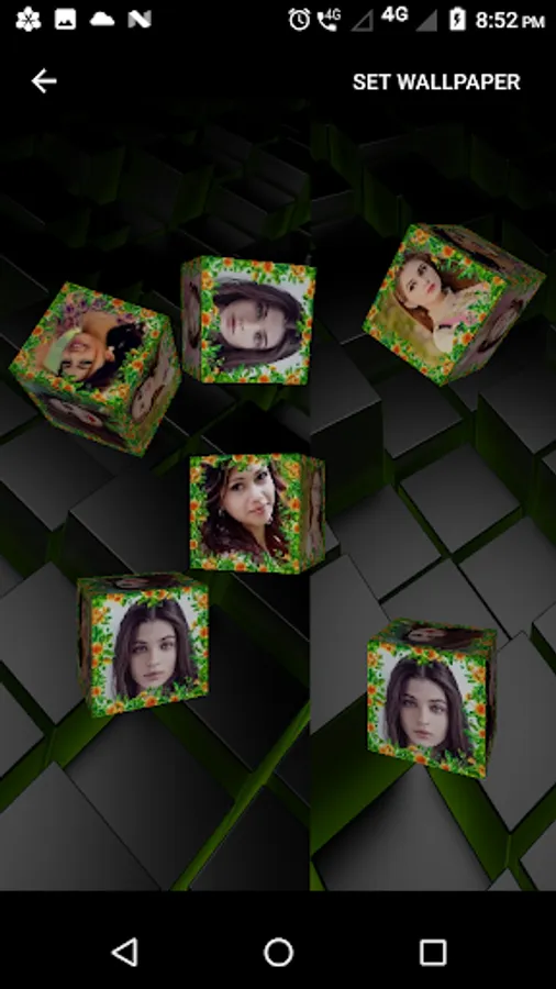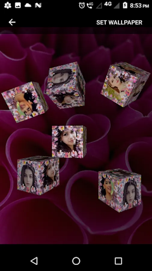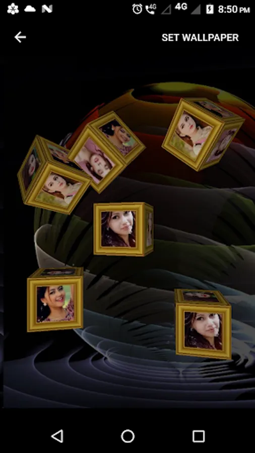 You set photo in the cube and also give your photo to different effect.You set this cube as a live wallpaper