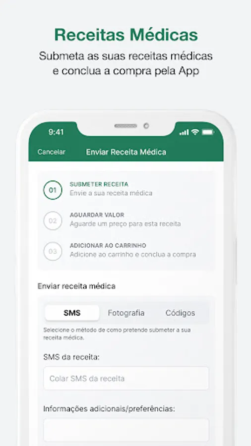 • Submit medical prescriptions, we include several formats such as: SMS, Photos or Recipe codes;