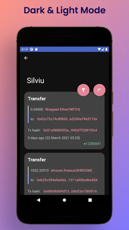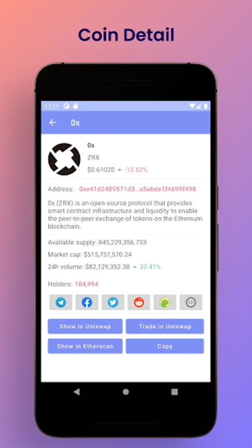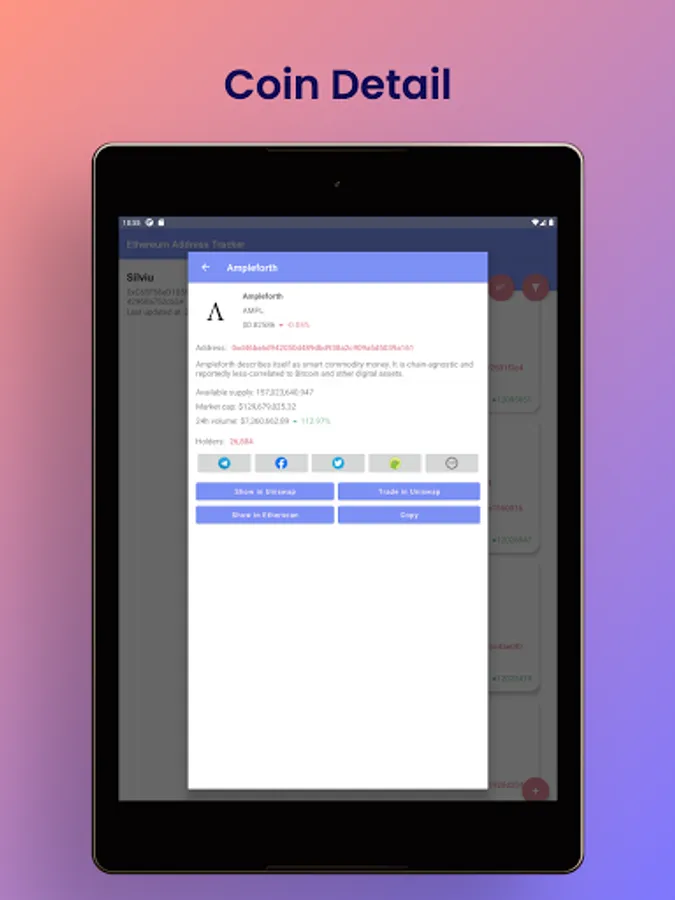 - Tapping on one coin, tx or other addresses will redirect you to Uniswap/Etherscan;