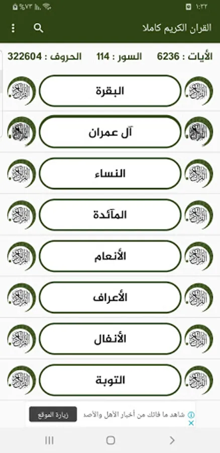 The Holy Quran application in Akram Al-Alaqmi's voice allows you to hear all the surahs of the Noble Qur’an through your mobile phone or tablet with ease through one program that contains all the surahs of the Holy Qur’an, and the Qur’an recitation application in the voice of Sheikh Akram Al-Alaqmi is free and available on the store For Android phones. In order to enjoy reciting the Holy Quran with the voice of Sheikh Akram Al-Alaqmi wherever you want.