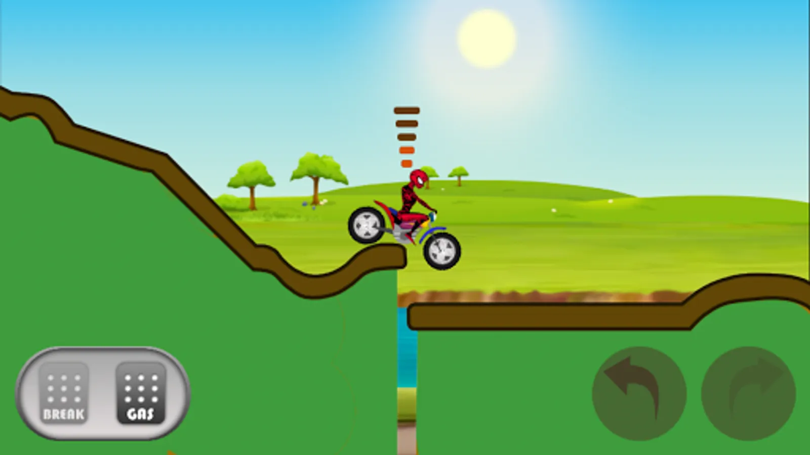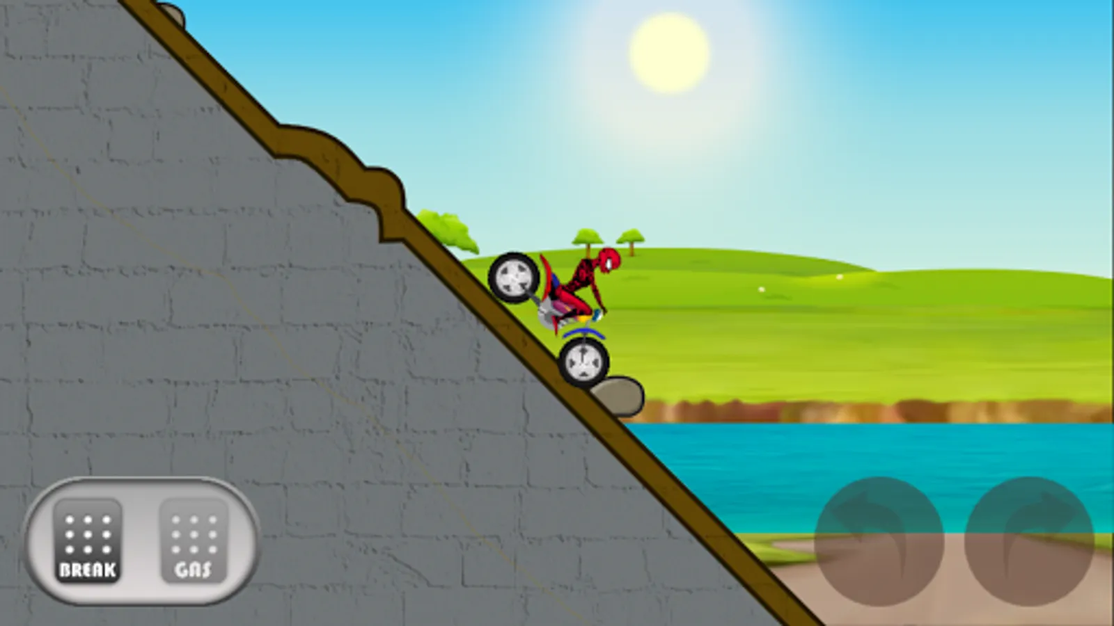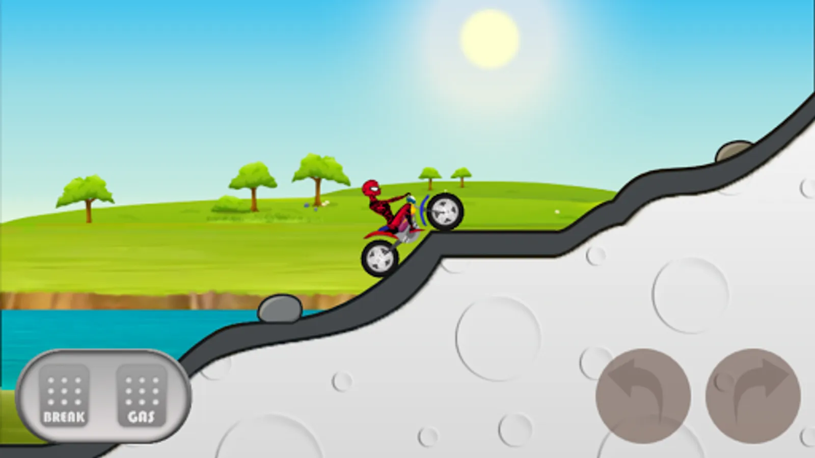 In this game our Hero will not be engaged in any furious fights with super villains but he will be riding a motorbike on hills. The challenge is to ride the motorbike on curvy roads of mountains and get to the finish line without losing life.