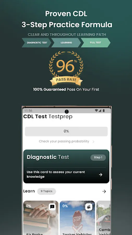 Customizable Study Plans: Create personalized study plans tailored to your individual needs and study preferences. Set study goals, allocate study time, and receive recommendations to optimize your CDL exam preparation.
