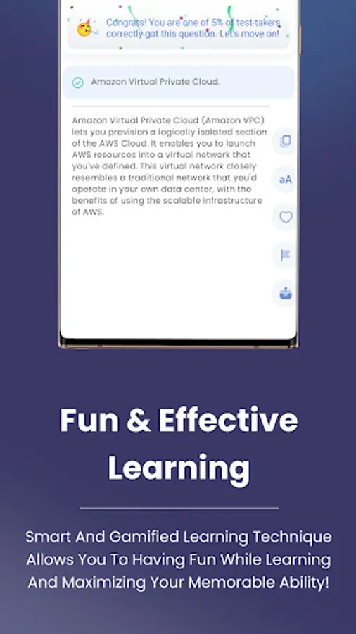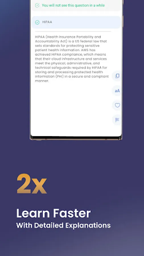 One of the standout features of the app is its detailed explanations. For every question, you will receive comprehensive explanations that not only reveal the correct answer but also provide in-depth insights into the underlying concepts. This helps you grasp the reasoning behind each answer and strengthens your understanding of AWS services and best practices.