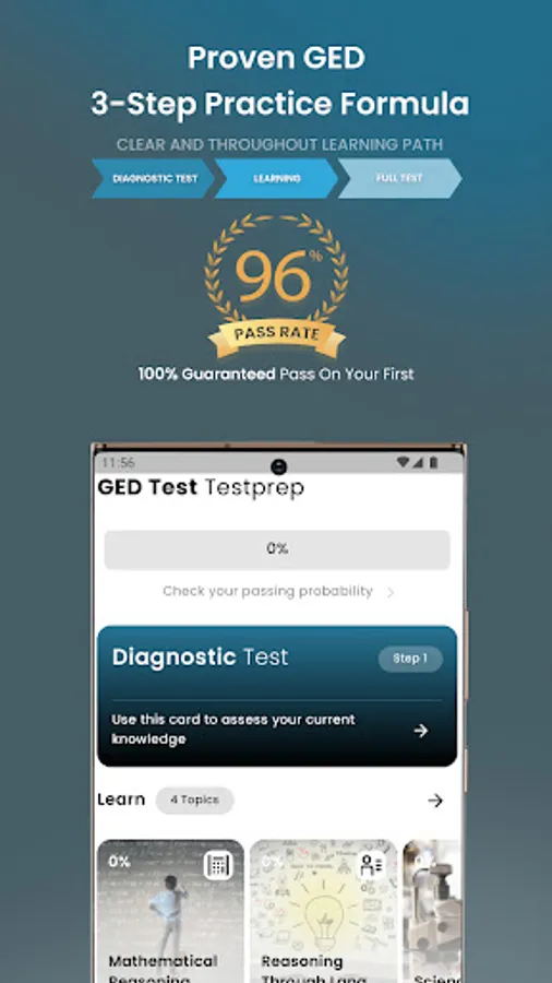 With 24/7 access to thousands of exam-like questions and detailed feedback, the GED Practice Test app will help you develop a personalized study plan to ace your GED exam. Download it today and start practicing!