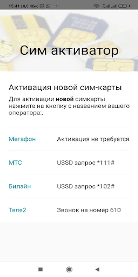 The application allows you to simplify sending a command to activate a new SIM card with one click
