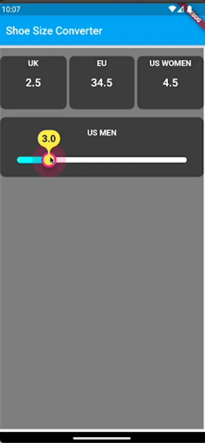 Simple converted of shoe size to different international sizes, i.e. US, EU and UK.