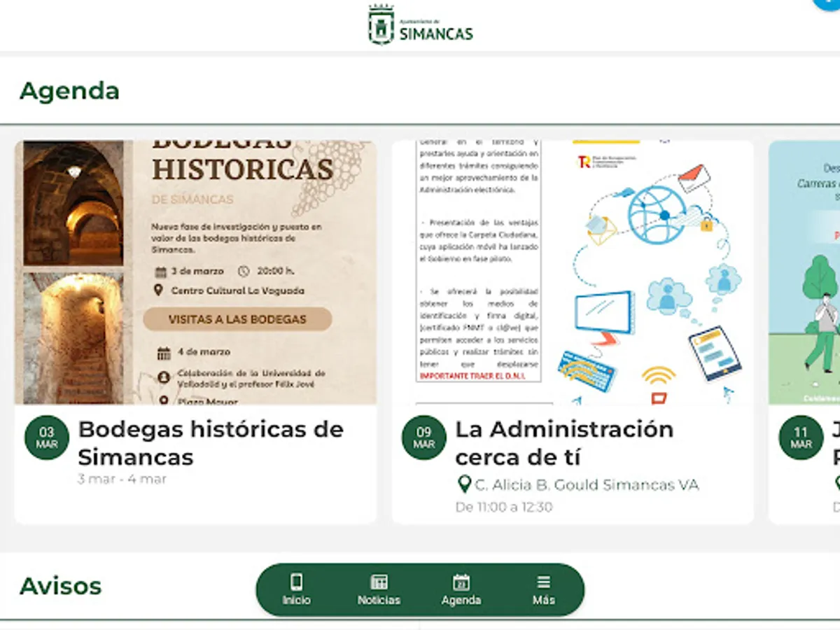 Simáncas Town Hall. Information on local news, cultural and sports agenda, street map with geolocator, useful telephone numbers, bus schedule, notifications...