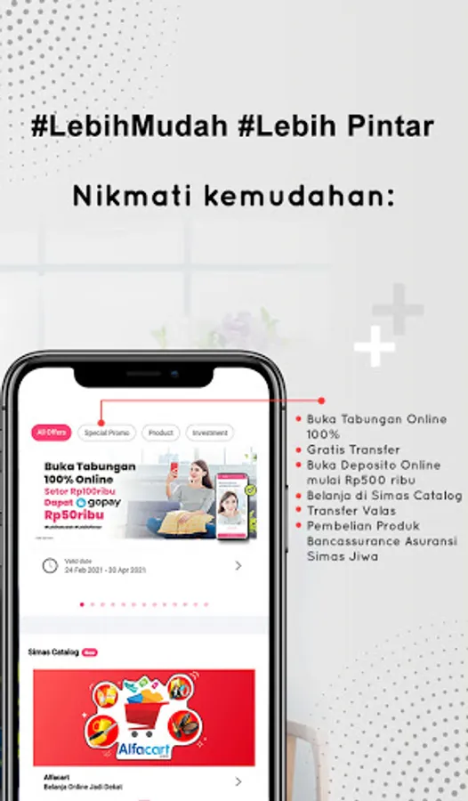No need to visit bank, open your saving account 100% online through your smartphone. You just need to download SimobiPlus app, take a selfie, and your saving account is ready.