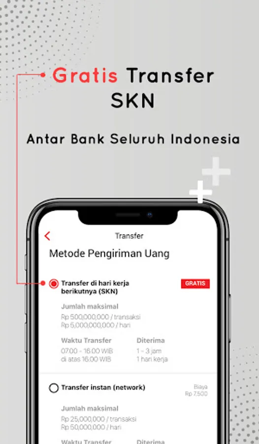 Get FREE transfer to other banks via national clearing system (Sistem Kliring Nasional). You can also use the other intra bank or inter bank transfer services (RTGS, and ATM network / RTOL), as well as the same foreign currency transfer.