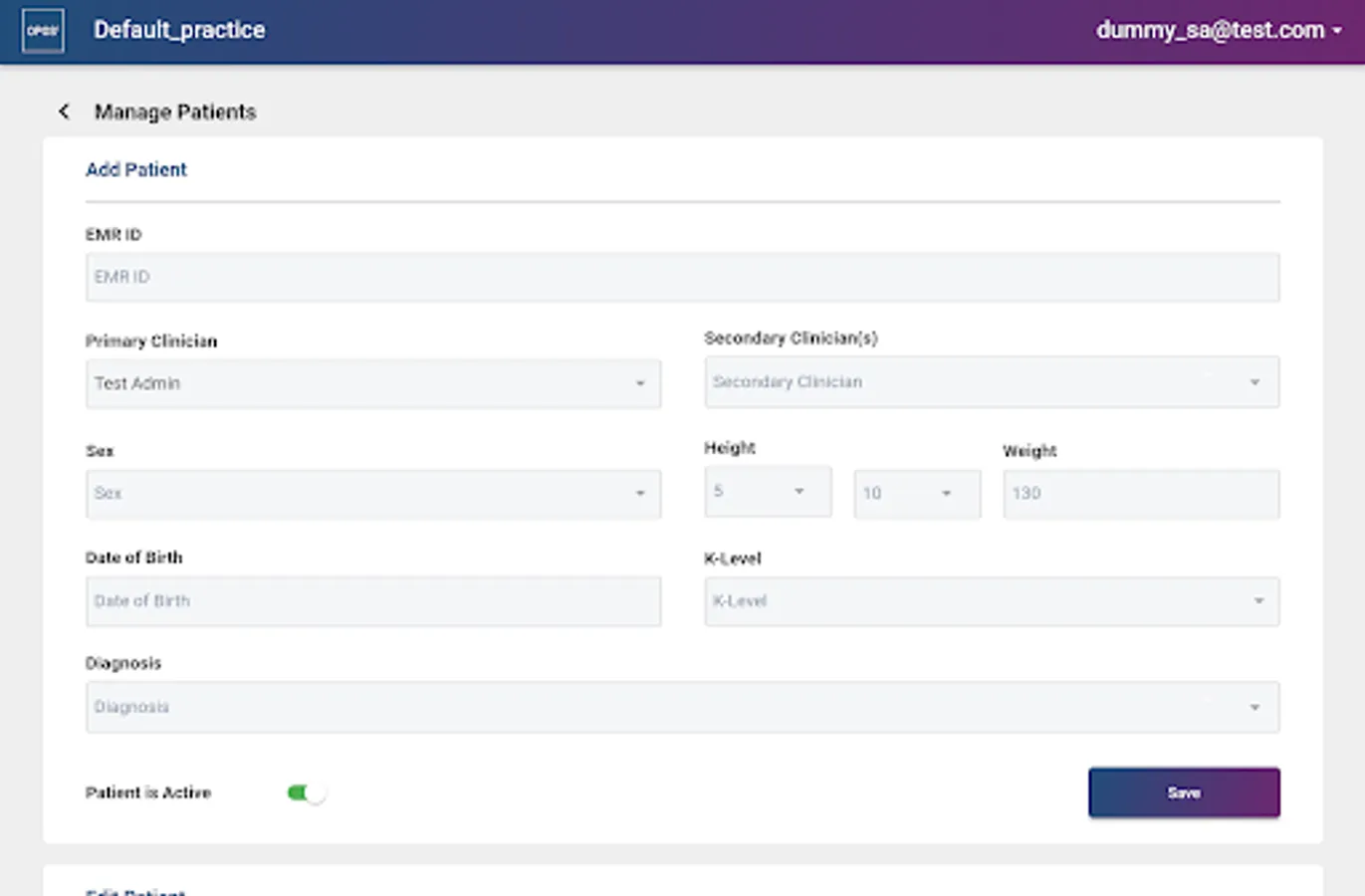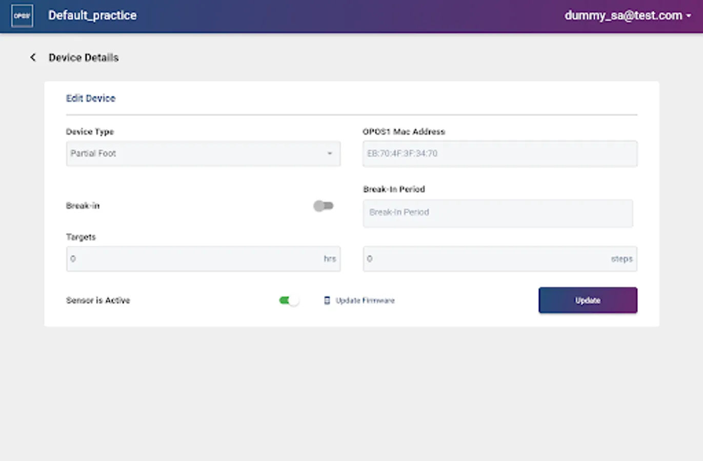With OPOS1, users can monitor compliance data through our user-friendly platform. Clinicians and practice admins using a tablet will purchase Bluetooth orthosis sensors that include use of the app from OPOS1. This will give them access to all the features of the app to configure and monitor sensor activity. Patients using a mobile device will be given access to the app by their clinicians. Clinicians will have access to all the features that come with the equipment, as this is a companion app to sensor equipment. Patients will have access to individual sensor results only as well as the ability to upload data from their own sensor.