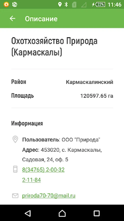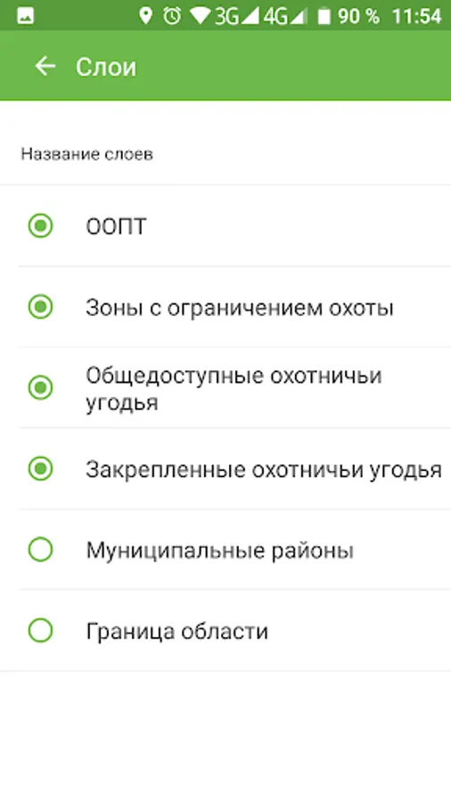 The hunter's map for each region of the Russian Federation from the list of available ones (see below) consists of the boundaries of hunting grounds, public hunting grounds, nature reserves and reserves, zones of protection of hunting resources and green zones of cities.
