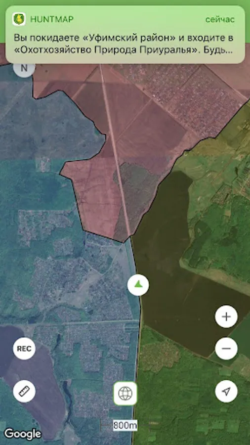 • Sound and text push-notification when crossing the borders of hunting grounds - you will find your bearings in time and not violate the rules of hunting.