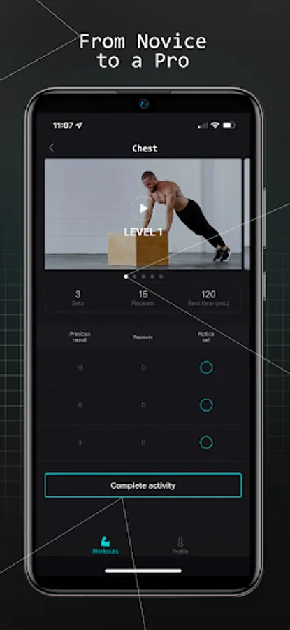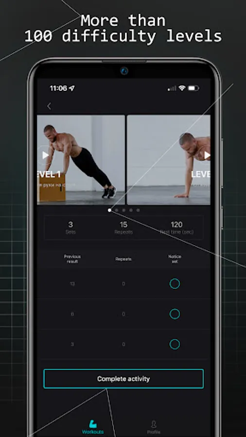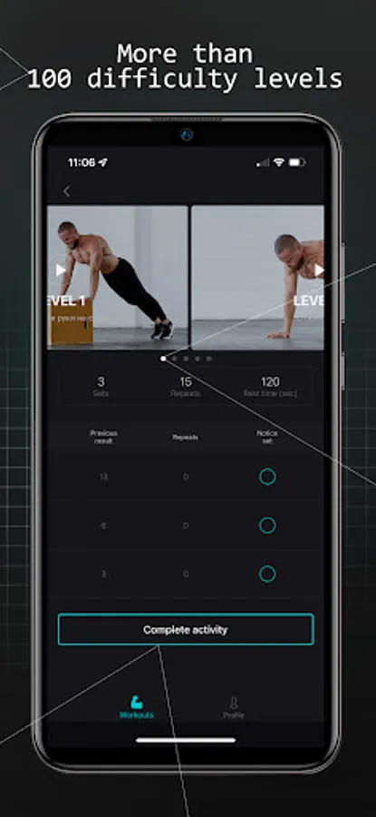 The level system makes exercises get harder and harder as you show a progress. Every workout will push your limits and give the motivation to continue as hard as you can in order to grow to the next level.