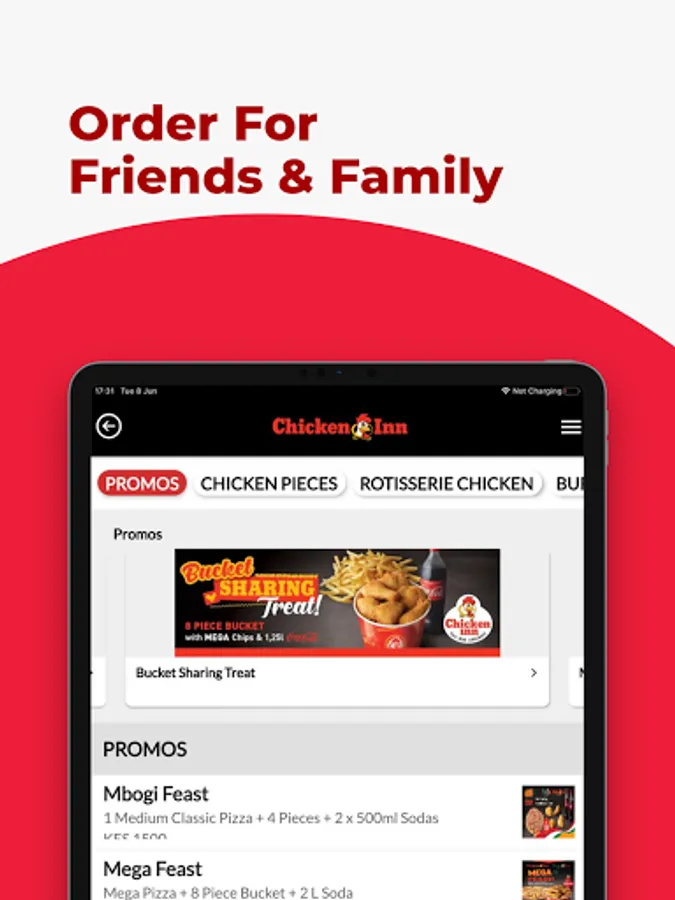 Order food delivery from Chicken Inn, Pizza Inn, Creamy Inn, Galitos, Grill Shack, Ocean Basket, Supermarket Essentials. Currently only in Kenya.