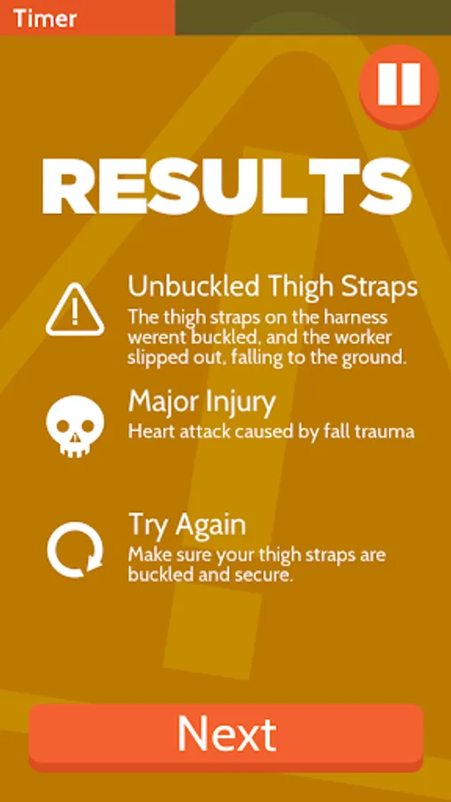 Disclaimer: Harness Hero engages players in the key decisions of using a fall arrest system. The certificate issued in this game recognizes the player’s in-game performance and has no merit upon real life aptitude. For more information on fall prevention, visit: https://www.osha.gov/stopfalls/index.html
