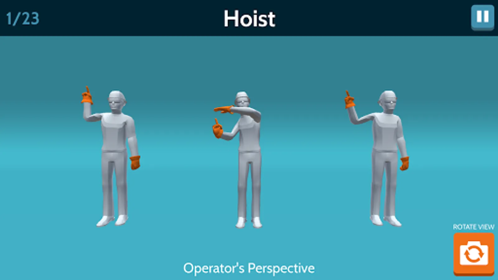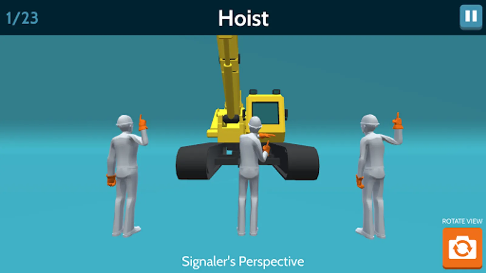 In this 23 question quiz, players must choose the appropriate hand signal animation based on the on-screen prompt. Choose correctly, and see the crane complete the task successfully. Choose incorrectly, and witness a disastrous accident. Receive feedback on the signals you missed and review them in the reference section of the application. Players who earn a perfect score on the quiz can generate a certificate of completion.