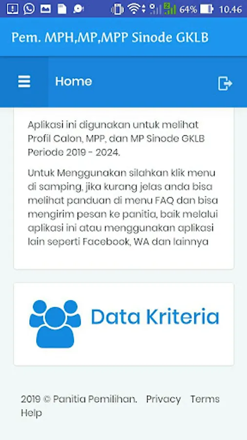 Election Information System for MPH, MP and MPP GKLB Synod Period 2019 - 2024 used: