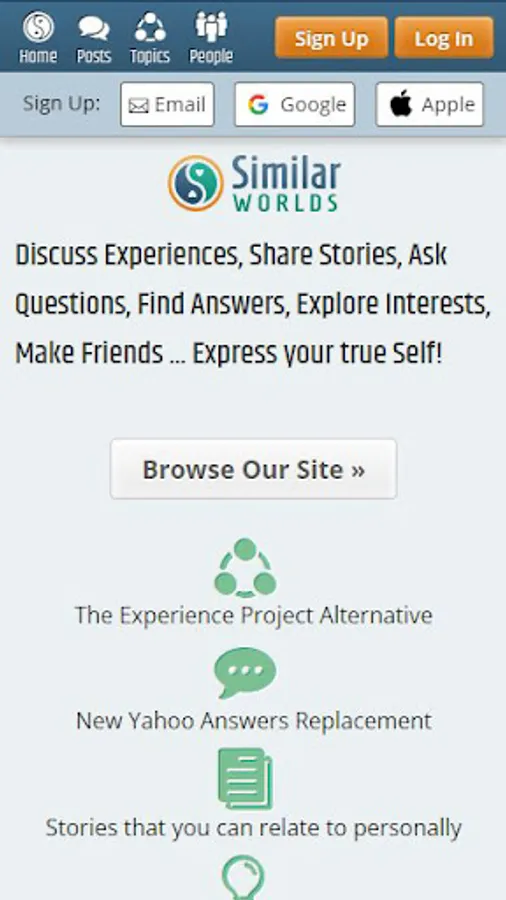 Hundreds of Thousands of our users prefer Similar Worlds over the other popular alternative Forum and Social apps.