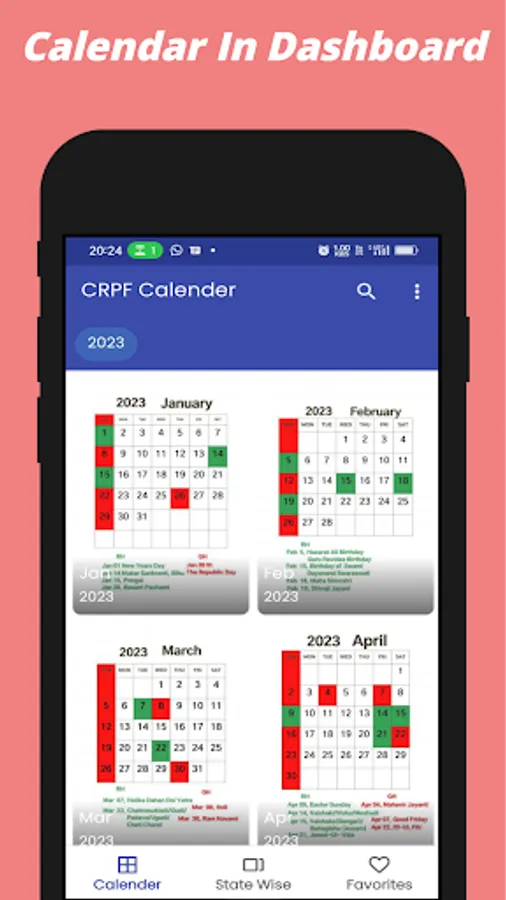 CRPF Calendar is the CRPF personnel Calendar 2023, It can be used as leave plan etc.