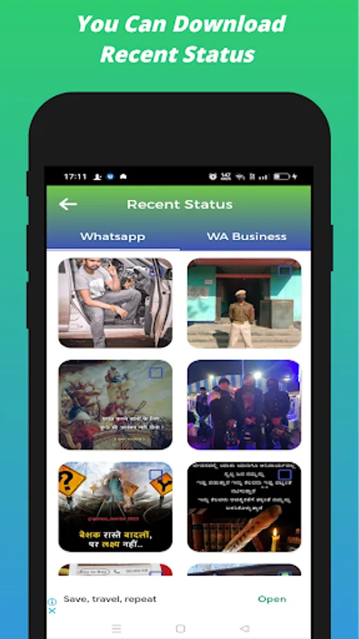 This app allows you to download images, GIF and Video status from your Whatsapps or WA Business and easily share with your friends.