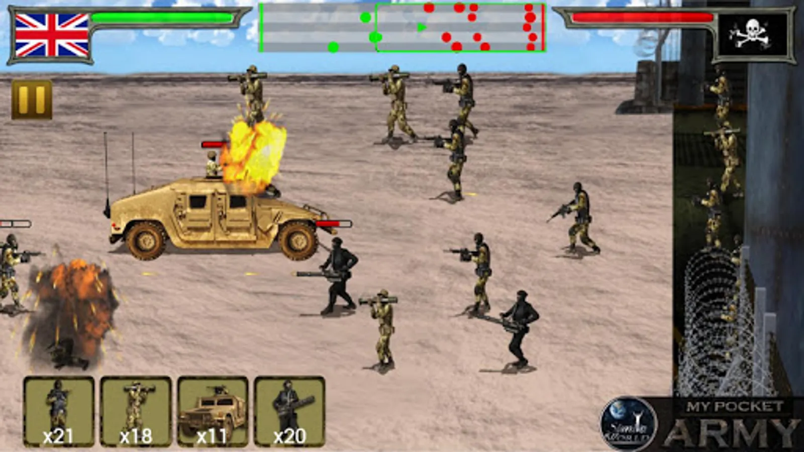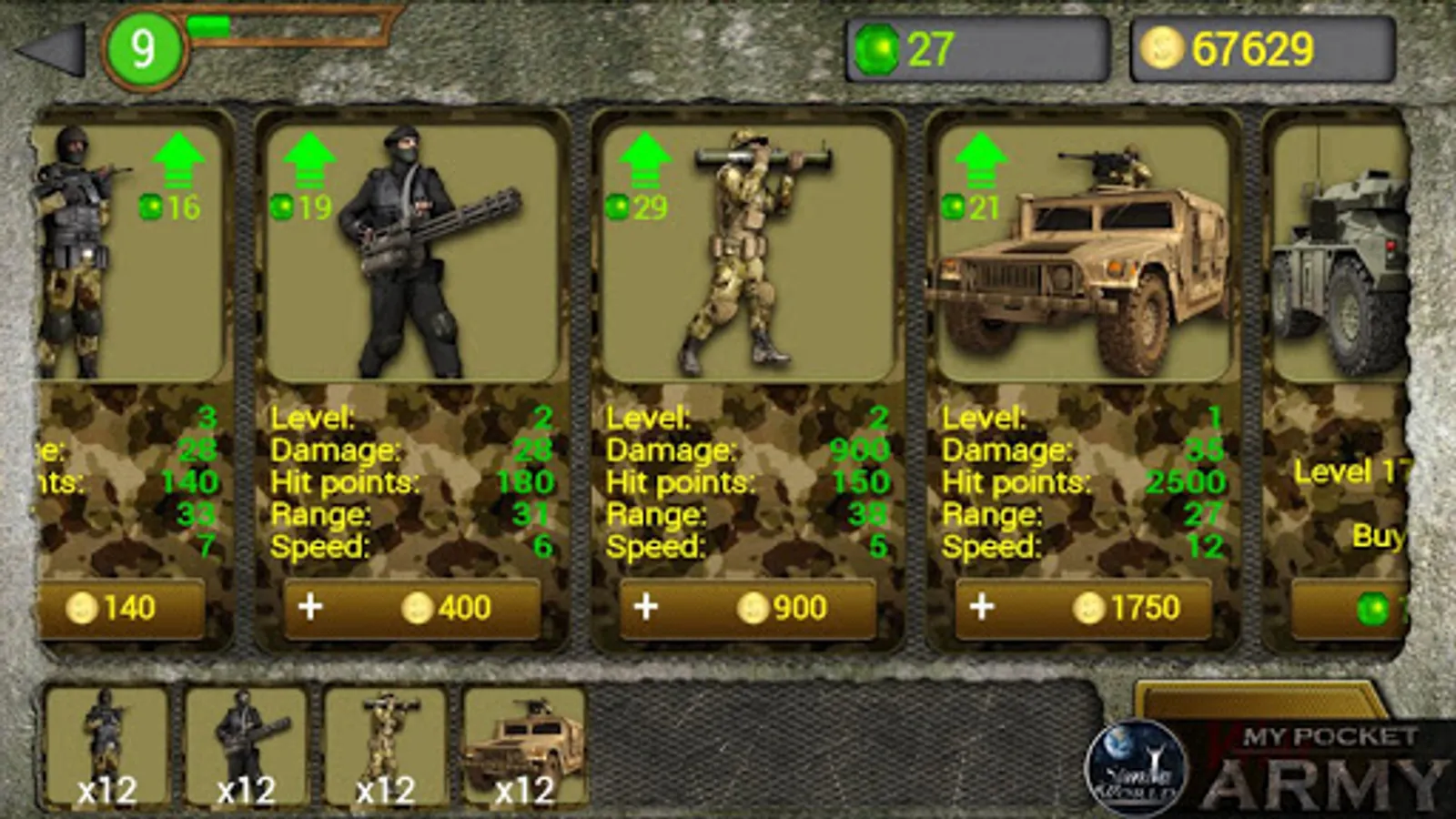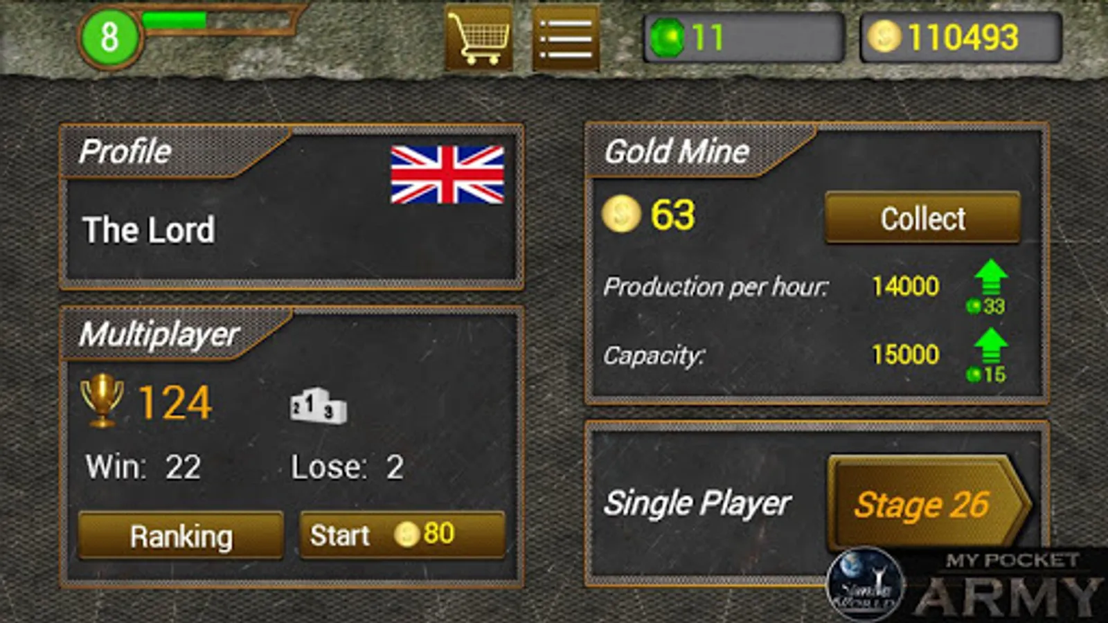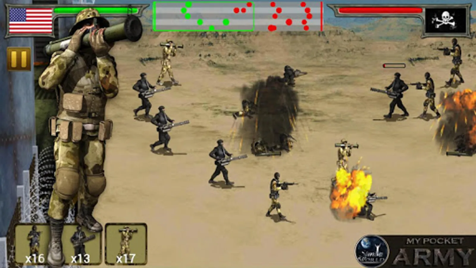My pocket army is a strategy war game where you raise your army and fight against your enemies.