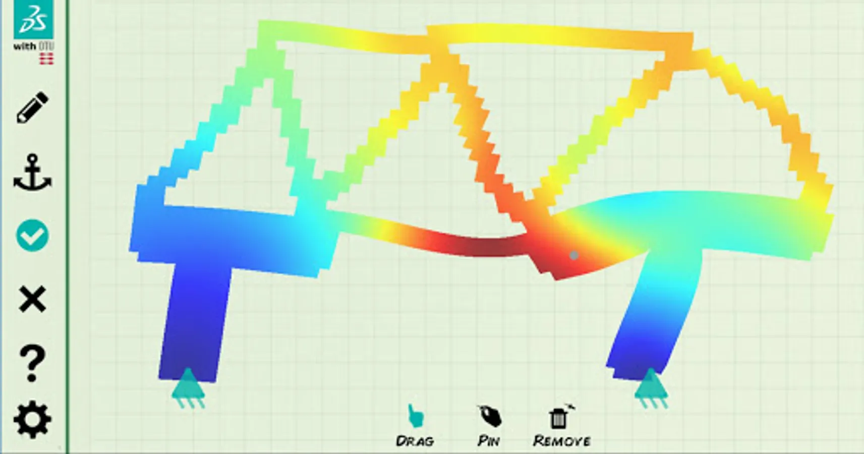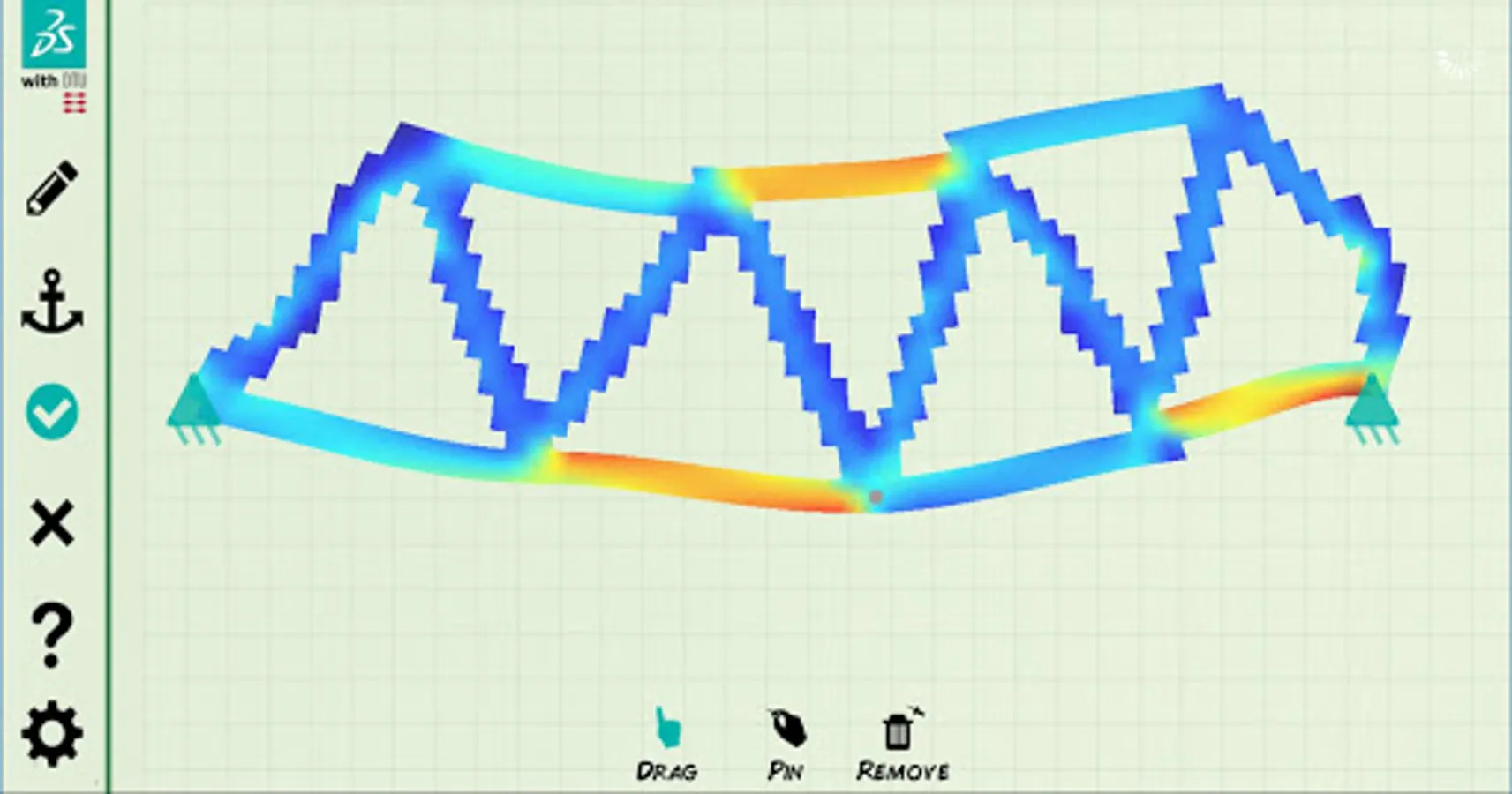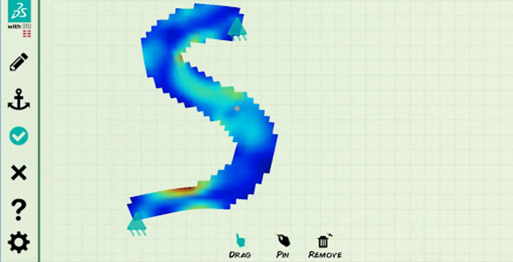 Users simply draw any 2D shape, and then apply boundary conditions and displacement loads to it. With a single tap, they can then display the results of these choices, which serve as an interactive introduction to finite element analysis.