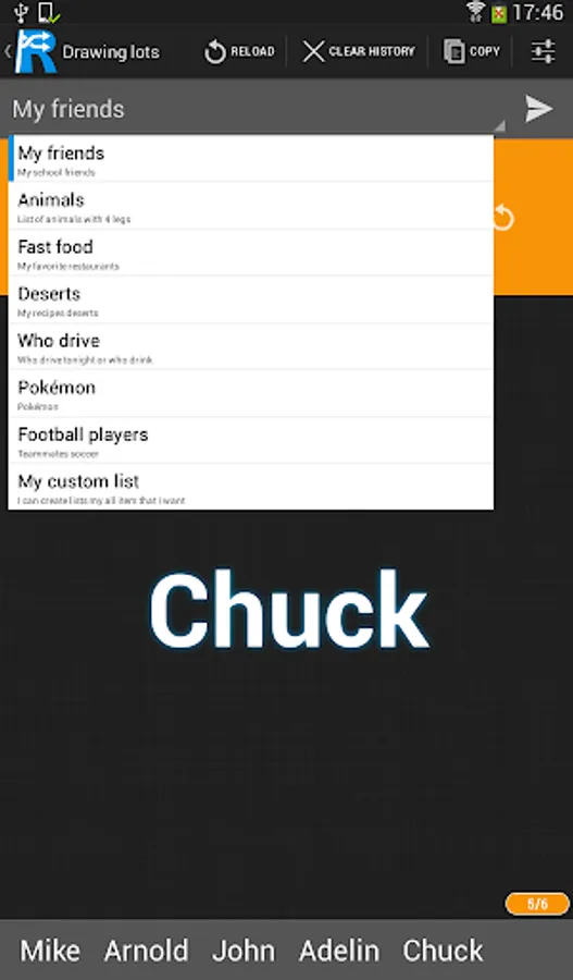 • Drawing Lots: Create your own lists, enter items (player names, drinks, cars, words...) and generate it randomly!