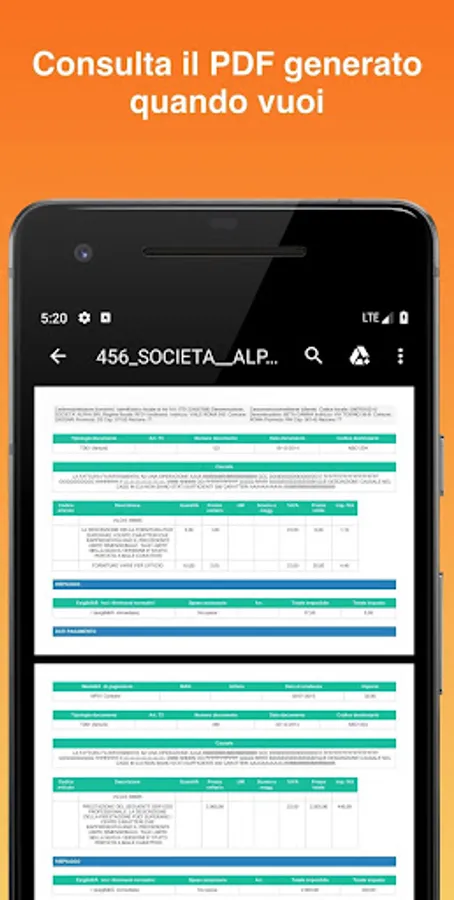 ● Open the PDF created previously containing the invoice without having to retransform old invoices directly from the table!