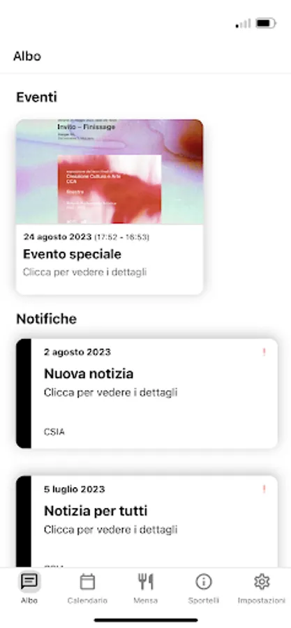 Application for viewing the timetable, news and information of the School Center for Artistic Industries of Lugano (CSIA).
