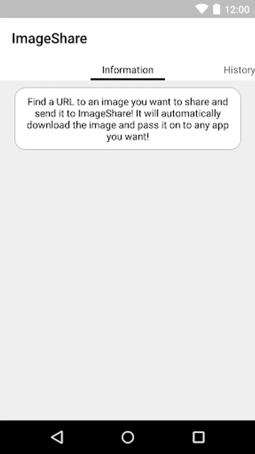 ImageShare allows you to share images found online to other apps without needing to download it yourself first. Just supply a URL to the image and it will be downloaded and then shared to an available app on your device.