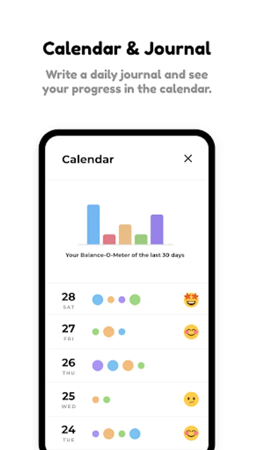 Reflect on your day and mood for a clearer and healthier mind. See your progress in the calendar.