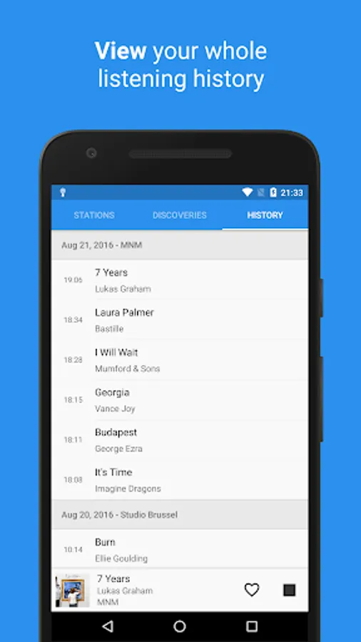 But that's not even necessary.. We keep a history of all the songs you've ever listened to. That way, you never have to wonder about the title of that one hit again.
