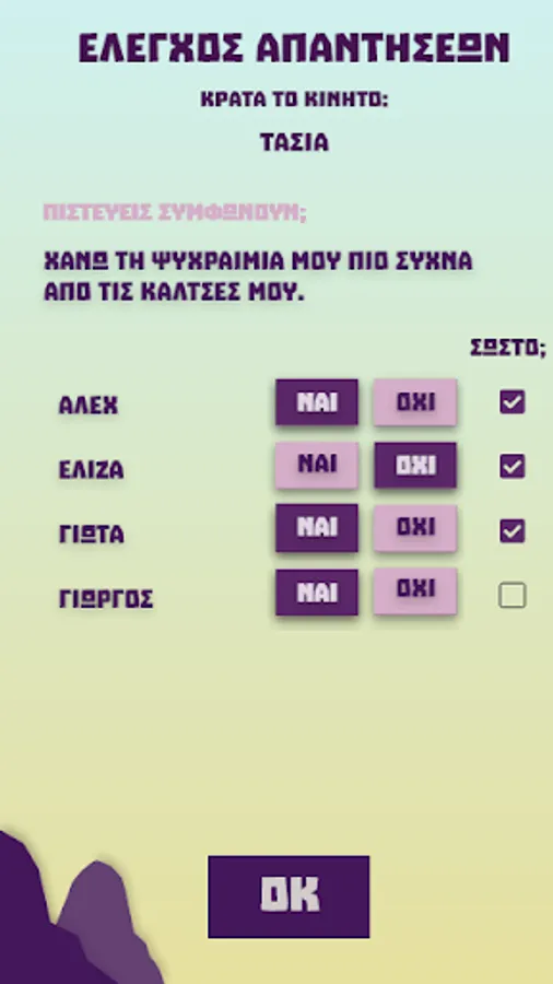Step 2: You lock in your guesses and ask around to cross-check their answers. Every correct guess gives you a point.